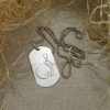 53 mm výška x 29 mm šírka + retiazka na krk .