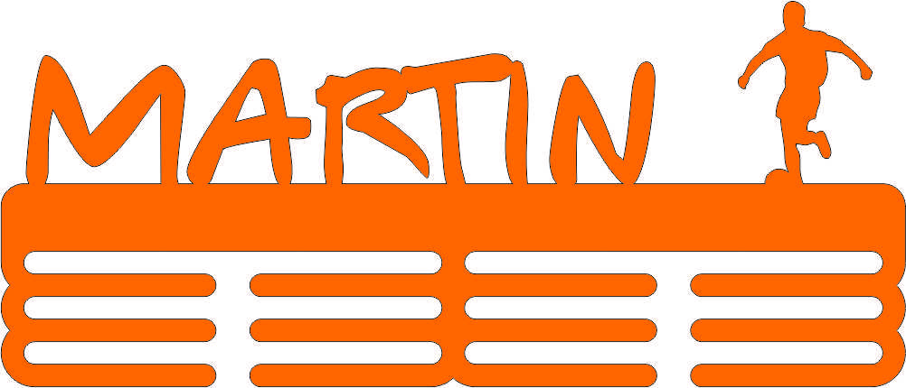 Topoľová preglejka 6 mm, definujte druh športu a meno . V prírodnom prevedení alebo nastriekaný striebornou alebo zlatou farbou . Šírka 400 mm x výška cca 160 mm .