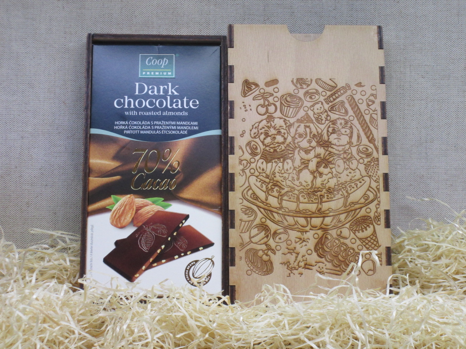 Predáva sa bez čokolády. Rozmer čokolady /Jednota/ je 90 mm x 184 mm.