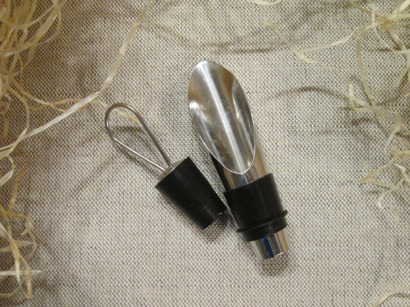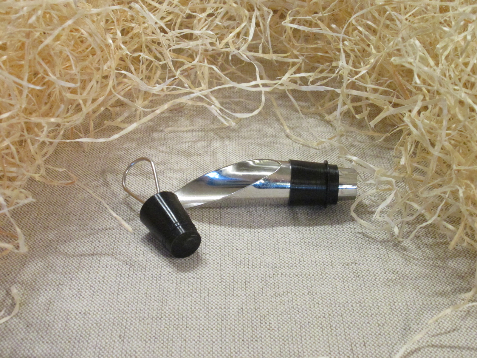 kovové nalievatko na fľašu aj s odoberateľným gumovým uzáverom