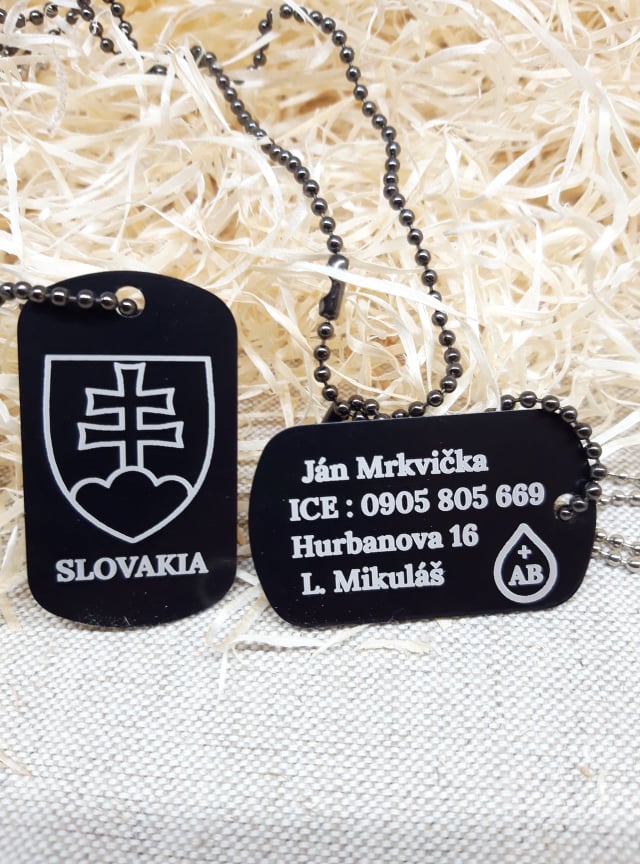 výška 50 mm x šírka 29 mm retiazka može byť 700 mm na krk, alebo krátka 110 mm cena vrátane gravíru a retiazky